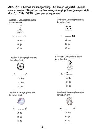 Latihan Pemulihan Bahasa Melayu Tahun 3 Malay Language Elementary Learning Beauty Brochures. Bahasa Melayu BM Bahasa Inggeris Matematik Sains Pendidikan Islam Sejarah Geografi Bahasa Arab Bahasa Cina Bahasa Tamil Asas Sains Komputer ASK Reka Bentuk dan Teknologi RBT. CONTOH SOALAN 2015 1 Januari 1.